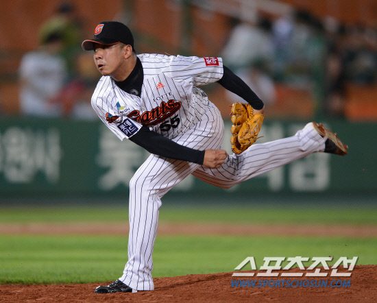 9회초 등판해 세타자를 범타로 처리한 롯데 김사율이 힘차게 볼을 던지고 있다. 부산=김경민 기자 kyungmin@sportschosun.com