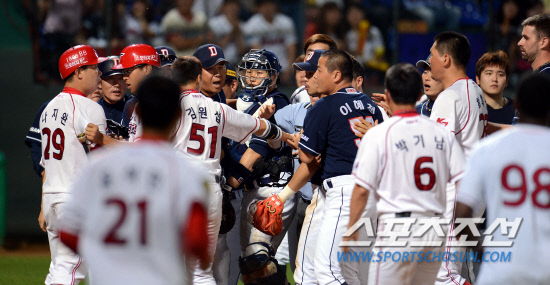 몇년 전까지 국내프로야구에선 '벤치클리어링이 벌어져도 다음날 선발투수는 절대 참전하지 않는다'는 얘기가 사실인 것처럼 여겨졌다. 모두가 뛰쳐나가지만, 이튿날 선발투수는 보호돼야 한다는 의미였다.
