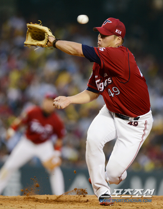 KIA 우완 선발투수 김진우가 팔꿈치 통증으로 4일 1군 엔트리에서 제외됐다.