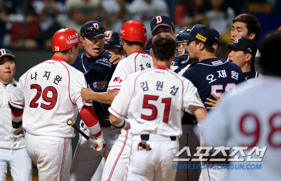 벤치클리어링의 두 주체, 나지완과 프록터는 이렇게 서로간의 오해를 풀어냈다. 하지만 당시 현장에는 또 다른 주인공이 개입돼 있었다. 바로 두산 외야수 김현수였다. 벤치클리어링이 벌어진 직후 김현수는 나지완과 필요 이상으로 언쟁을 벌였다. 벤치클리어링이 정리되고, 경기가 속개된 후에도 이 언쟁은 이어졌다. 볼넷으로 걸어나간 나지완이 후속 차일목의 안타로 2루에 나간 뒤 우익수로 나가있던 김현수와 또 말싸움을 벌였다. 중계화면에는 두 선수가 서로를 향해 욕설을 내뱉는 모습이 생생히 잡혔다.