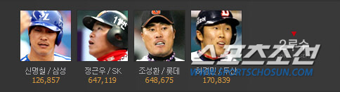 올스타 베스트10 온라인 투표에서 롯데 조성환이 줄곧1위를 달리던 SK 정근우를 제치고 1위로 올라섰다. 온라인투표 사이트 캡쳐