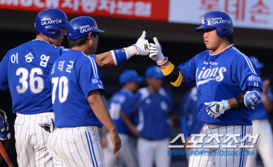박석민은 8일 부산 롯데전에서 4회 롯데 선발 송승준으로부터 좌중월 투런 홈런을 빼앗았다. 한방으로 전세를 2-1로 뒤집었다. 삼성은 이후 3점을 보태며 승기를 잡았다. 박석민은 4번 타자가 된 후 4경기 만에 홈런을 터트렸다. 이날 3타수 2안타. 그는 "오랜만에 중요한 순간 제몫을 했다. 최근에 중요한 순간에 잘 못쳐서 미안했었다"면서 "상대 투수의 포크볼이 가운데 몰렸다. 운좋게 홈런을 쳤다"고 말했다.