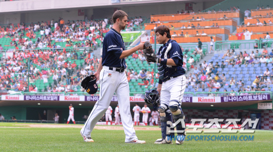 니퍼트는 김 감독에게 여러차례 "그러지 않겠다"고 약속했다고 한다. 하지만, 윤석민과 마찬가지로 습관적으로 타구를 향해 손을 뻗는 행동이 잘 고쳐지지 않는 모양이다.