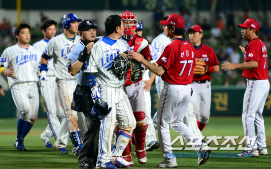 노련한 진갑용도 이런 일련의 흐름을 훤히 꿰고 있었다. 노장의 어깨는 다치기 쉽다. 게다가 얼굴과도 가깝다. 아무리 보복성 빈볼이라도 그런 부위로 공이 날아오면 순간적인 화를 참을 수 없게 된다. 그럼에도 진갑용은 화를 금세 식히는 모습을 보여줬다. 왜 이런 상황에 자신에게 빈볼이 날아왔는지, 그리고 자신이 반대 상황이었다면 주장으로서 어떤 지시를 했을 지 충분히 이해하고 있었기 때문이다.
