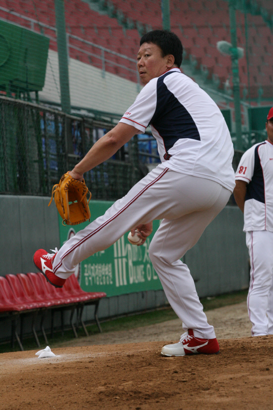 습한 날씨에 땀을 뻘뻘 흘리며 덕아웃으로 돌아온 선 감독은 "(레전드 올스타 준비 차원의) 처음이자 마지막 피칭"이라며 고개를 절레절레 저었다. 이어 "1이닝을 던질 예정인데 20개 정도면 되지 않겠느냐"고 말하며 웃었다. 선 감독은 빨간색 스파이크를 벗으며 "(윤)석민이가 빌려준 새 스파이크인데…"라며 흙을 툭툭 털었다. 선 감독은 여전히 위력적인 슬라이더에 대해 "사실 나는 체격에 비해 손이 작아 나름 변형된 슬라이더 그립을 쥐고 던진다. 손으로도 뺄수 없을만큼 중지를 강하게 잡고 직구 던지듯 던진다. 선수들에게 가르쳐주려 해도 배우기가 쉽지 않다"고 설명했다. 잇단 주위의 찬사에 머쓱한 표정을 짓던 선 감독은 "이 참에 선수 등록해볼까"라며 껄껄 웃었다. 지나가던 이강철 투수코치와 최향남에게는 "내가 마무리 해볼까?"라고 농담을 던져 웃음을 자아냈다.
