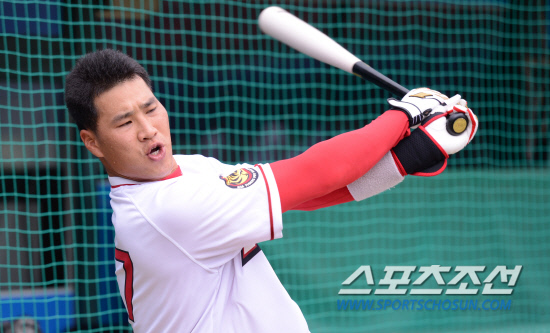 | 17일 광주 두산전에 앞서 훈련중인 김상현. 김경민 기자 kyungmin@sportschosun.com / 2012.07.17. |