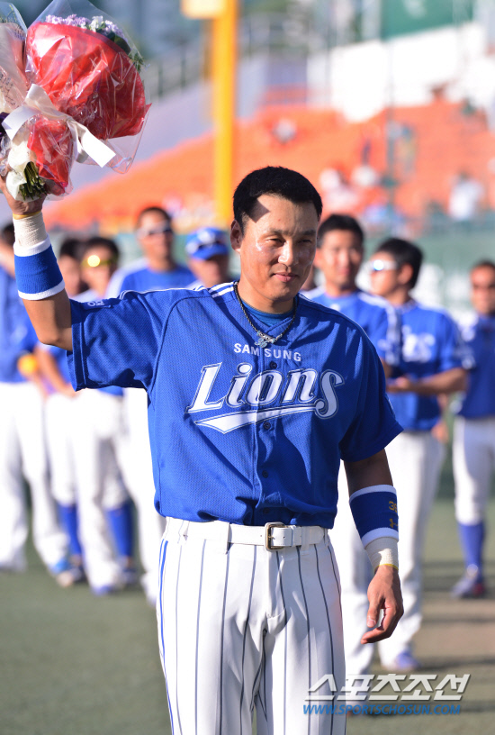 삼성 이승엽이 29일 목동 넥센전 4회에 한일통산 500홈런을 터뜨린 뒤 축하 꽃다발을 들고 포즈를 취하고 있다. 목동= 김경민 기자 kyungmin@sportschosun.com