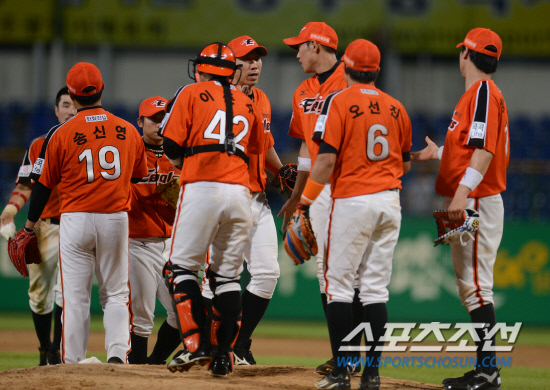 프로야구 KIA와 한화의 경기가 29일 광주 무등야구장에서 펼쳐졌다. 승리를 거둔 한화 선수들이 자축하고 있다. 광주=전준엽 기자 noodle@sportschosun.com