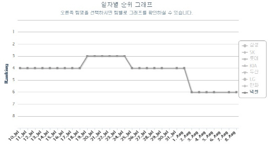 5월 23일 리그 1위까지 달렸던 넥센은 조금씩 떨어지기 시작하더니 리그 6위까지 떨어진 상황입니다.