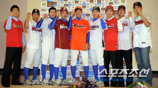 | 지난해 8월 열린 2012 신인드래프트 1라운드 지명자들이 지명회의 후 기념촬영을 하는 모습. 스포츠조선DB |