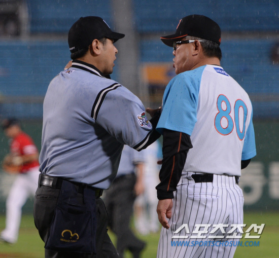 경기중단을 선언하자 당연히 항의가 빗발쳤다. 납득할 수 없었던 결정에 롯데 양승호 감독은 곧바로 거세게 항의했다. 그러자 이번에는 다시 결정을 번복했다.