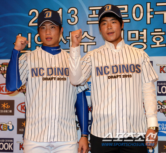 우선지명으로 NC에 지명된 윤형배와 이성민이 포즈를 취하고 있다. 허상욱 기자 wook@sportschosun.com