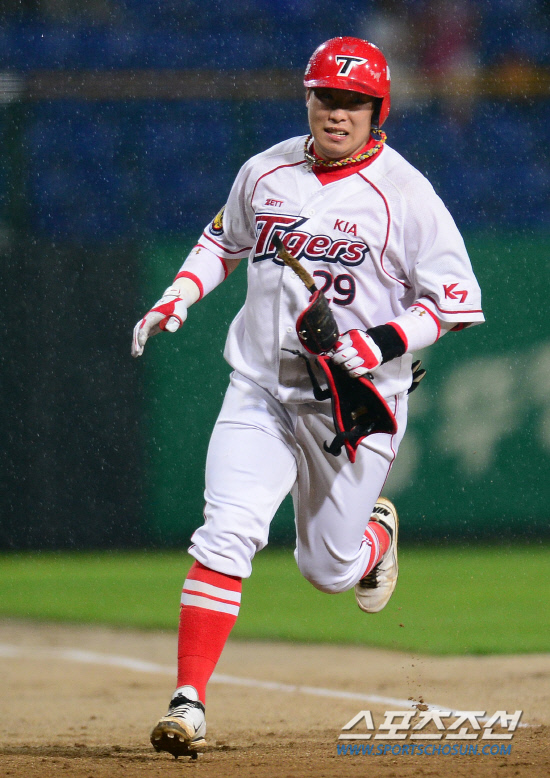 새 4번타자 나지완이 폭발했다. 0-2로 뒤진 4회초 2사 후 상대 선발 신재웅의 2구째 137㎞짜리 직구를 밀어쳐 우측 담장을 넘겼다. 거세게 내리던 비를 뚫고 날린 추격의 솔로홈런. 하지만 나지완의 홈런 이후 비로 경기가 중단돼 가슴을 졸이기도 했다.