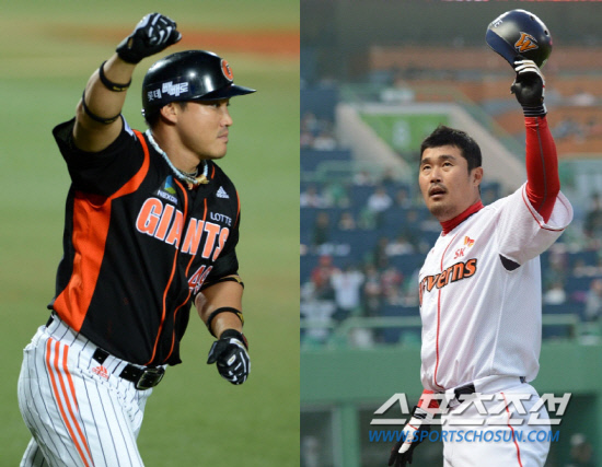 | 롯데 홍성흔과 SK 이호준이 골든글러브를 놓고 치열한 자존심 대결을 벌이고 있다. 스포츠조선DB |