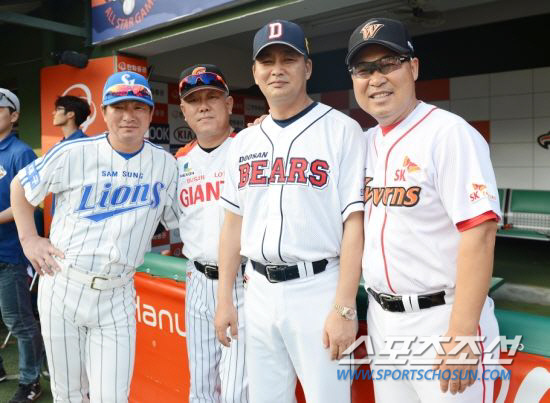| 지난 7월21일 대전에서 열린 올스타전에서 경기전 포즈를 취한 서군 감독들. 전준엽 기자 noodle@sportschosun.com |