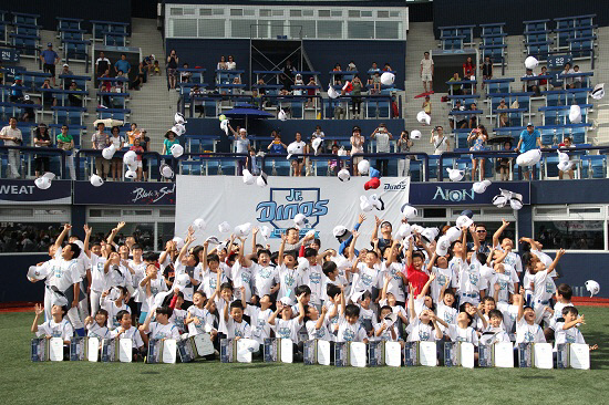 NC가 지난 25일 지역과 함께 하는 '주니어 다이노스 베이스볼 아카데미 2012' 수료식을 진행했다.