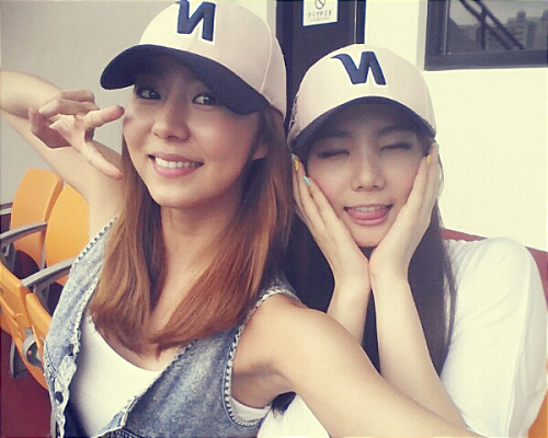 애프터스쿨 유이가 멤버 가은과 함께 찍은 야구장 셀카를 공개했다.