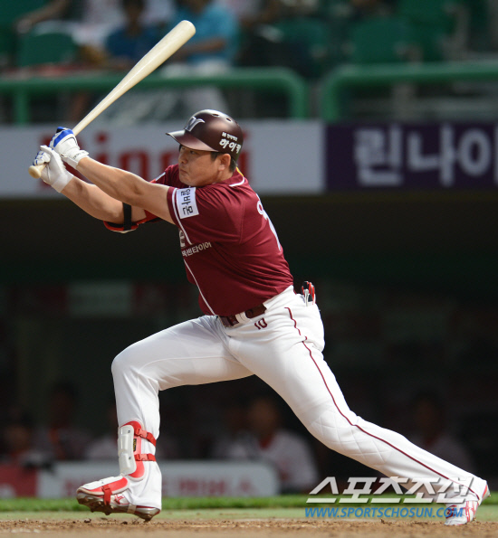 1-1로 맞선 6회 무사 1,2루에서 자신에게 주어진 과제였던 번트를 실패했다. 결국 헛스윙 삼진. 안타는 커녕 진루타 하나 치지 못한 자책감에 이성열은 고개를 푹 숙이고 덕아웃으로 돌아갔다. 그리고 8회 2사에서 김민성이 볼넷으로 걸어나가자 다시 타석에 섰다.