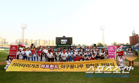 지난해 적립한 기금 중 4000만원을 광주, 전남·북, 경기 지역 저소득층 초·중·고 야구 선수 80명에게 전달했다. 타이거즈 러브펀드는 KIA 선수들의 경기 기록에 따라 선수 본인과 구단 프런트, 기아차 임직원들이 자발적으로 설정한 기부금을 매월 적립해 시즌 종료후 적립된 기부금으로 야구 발전과 소외계층 아동 지원 등 다양한 사회공헌 활동을 펼치는 프로그램이다.