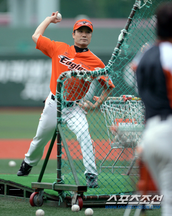 넥센과 한화의 2012 프로야구 경기가 14일 목동구장에서 열렸다. 경기 전 한화 한용덕 감독대행이 타격훈련을 하는 선수들에게 배팅볼을 던지고 있다. 목동=허상욱 기자 wook@sportschosun.com
