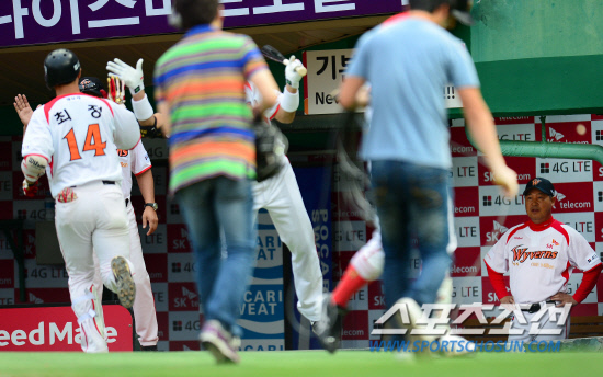 그라운드를 돈 최 정이 덕아웃으로 들어오면서 수많은 축하를 받았다. 코칭스태프와 팀동료들의 축하를 받았다. 하지만 이 감독은 덕아웃에 가만히 서 있었다. 아예 나오지도 않았다.