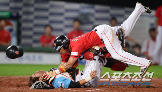 김강민과 강민호의 충돌은 페넌트레이스 2위 싸움의 최대분수령인 이날 경기의 치열함을 대변했다. 18일 롯데-SK전은 '사직혈투'였다.