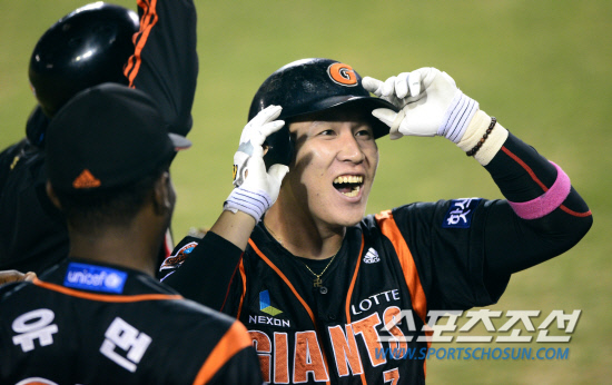 두산베어스와 롯데자이언츠가 8일 오후 잠실야구장에서 준PO 1차전 경기를 가졌다. 8회 1사 1루에서 대타로 나온 롯데 박준서가 두산 홍상삼을 상대로 동점 우월 투런포를 날렸다. 덕아웃에서 동료들의 축하를 받으며 환호하고 있는 박준서. 잠실=송정헌 기자 songs@sportschosun.com