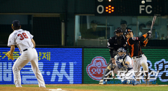 볼카운트 1B 1S에서 홍상삼의 결정적인 실투. 포크볼이 떨어지지 않고 가운데 높은 곳으로 들어왔다. 조성환은 힘껏 휘둘렀지만, 파울이 백스톱을 맞았다. 흔히 파울이 백스톱에 맞았다는 것은 타이밍이 제대로 맞았다는 의미. 조성환은 너무나 아쉬워했다. 제대로 맞힐 수 있는 기회를 놓쳐버렸기 때문이다. 당연히 심리적인 부담감은 더욱 심화될 수밖에 없었다.