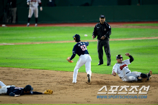 오재원은 말그대로 '최고'의 활약을 펼치며 팀을 탈락 위기에서 구했다. 공수에서 김 감독의 의도가 100% 들어맞았다. 2타수 1안타 2타점 2볼넷 1사구. 이날 오재원이 남긴 공식 기록이다. 그러나 이 숫자로는 오재원의 활약도를 채 20%도 설명하지 못한다. 몇 가지 장면을 들여다보자.