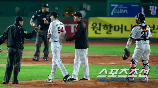 결국 1회 선두타자 이종욱을 몸에 맞는 볼로 내보냈다. 왼쪽 종아리에 제대로 맞았다. 이종욱은 쓰러졌고, 고통스러워했다. 응급처치를 했지만, 계속 뛰는 것은 무리였다. 하지만 그는 1루로 걸어나갔다.