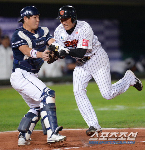 결국 조성환은 홈에서 태그 아웃 당했다. 그것도 두산 포수 양의지가 한참 기다렸다 태그를 할 만큼 타이밍도 좋지 않았다. 이로 인해 롯데는 추격의 기회를 놓치며 결국 3차전을 내주고 말았다.