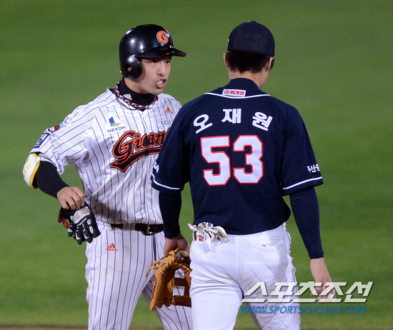 두산의 리드로 진행되던 경기. 8회말 손아섭이 세리머니를 할 수 있는 찬스가 왔다. 4회 선두타자로 나와 중견수 키를 넘기는 2루타를 터뜨린 후 2루 베이스에서 세리머니의 주인공 오재원에게 장난을 걸었다. 0-3으로 끌려가던 롯데는 8회 니퍼트와 홍상삼을 공략, 3점을 따라갔다. 특히, 마지막 3번째 득점의 주인공이 손아섭이었다. 전준우의 희생플라이 때 필사적으로 홈으로 달려 세이프됐다.