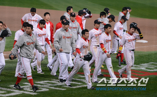 2-1로 앞선 6회말. 경기 진행중 박희수가 덕아웃 앞에서 캐치볼을 했다. 선발 윤희상에 이어 7회초부터 박희수가 등판한다는 뜻. 박희수가 8회까지 던지고 9회에 정우람이 마무리를 하는 시나리오였다. 그런데 조인성의 2루타로 2점을 추가해 4-1로 벌어지자 박희수가 덕아웃으로 들어가고 엄정욱이 나와 몸을 풀었다. 3점차의 여유가 있으니 박희수를 조금이라도 아끼겠다는 뜻이었다. 7회초 1사 2,3루의 위기가 와도 이 감독은 꿈쩍하지 않고 엄정욱을 믿었고, 2점을 내줘 4-3으로 쫓기자 박희수를 투입했지만 결국은 4-4 동점을 허용했다. 시즌 때라면 7회초부터 무사 1,2루나 1사 2,3루서 박희수가 투입됐었다.