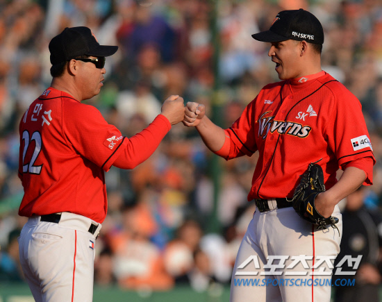 "마리오의 경기전 연습피칭을 보니 볼이 좋더라. 1∼2점만 내면 승부가 될 것 같았다. 마리오가 6회까지만 던져주면 박희수와 정우람이 있어 승산이 있다고 봤다"는 이 감독은 "9회 정우람이 홈런을 맞았지만 분위기가 좋아 이길 것 같았다"라고 했다.