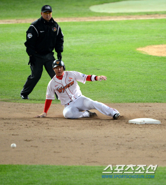 22일 플레이오프 5차전서 키스톤 플레이의 약속된 플레이가 어긋날 때 얼마나 치명적인 결과가 나오는지를 보여주는 장면이 나왔다. 3-4로 뒤진 5회말 롯데의 수비. 2사 1,3루 SK 박정권 타석 때 사건이 터졌다. 볼카운트 3B1S에서 롯데 투수 송승준의 5구째에 1루주자 최 정이 2루로 뛰었다. 스트라이크가 돼 풀카운트가 됐고 공을 받은 롯데 포수 강민호는 지체없이 2루로 던졌다. 그런데 2루엔 2루수 박준서도, 유격수 문규현도 없었다. 강민호의 송구가 마치 중견수앞 깨끗한 적시타처럼 유격수와 2루수 사이를 통과했다. 3루주자 박재상이 홈을 밟았고, 최 정은 3루까지 달렸다. 아무도 들어오지 않는데 던진 강민호의 시야도 문제였지만 당연히 들어와야 할 베이스 커버를 하지 못한 키스톤 콤비에 1차 책임이 있다. 롯데는 수비 미스로 자멸하며 경기 후반 쫓아갈 힘을 잃어버렸다.