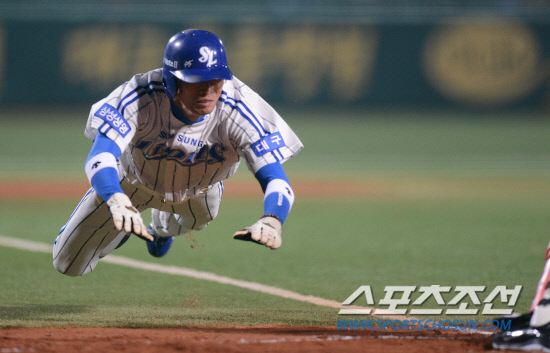 김강민에 막혀 6회 추가점 루트가 꽉 막힌 삼성은 강했다. 강명구의 '주루 본능'이 있었기 때문이다. 바로 다음 이닝인 7회말. 대주자로 2루를 밟은 강명구는 배영섭의 내야 안타 때 3루서 오버런을 했다. 김재걸 3루 코치가 앞 길을 막아섰다. 보통 이쯤되면 가속을 상실한 주자는 십중팔구 3루로 돌아간다. '최고 센스'를 자랑하는 SK 2루수 정근우가 3루에 송구하고 3루수 최 정이 태그 동작을 취한 이유. 하지만 강명구는 냅다 홈을 향해 뛰었다. 절묘한 헤드퍼스트 슬라이딩으로 플레이트를 터치했다. 실수를 전화위복으로 만들어낸 본능적 순간 판단. 삼성의 1차전 승리가 90% 확실해지는 순간이었다.