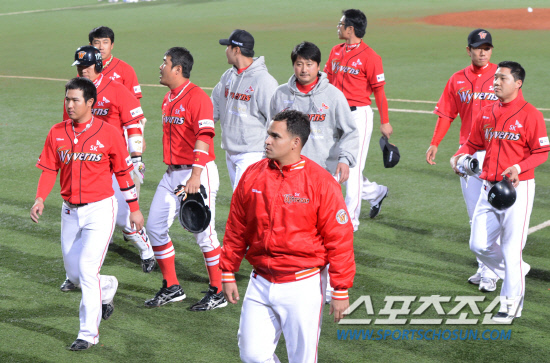 이번 포스트시즌 내내 답답한 SK 타선에 더이상 기대할 건 없을 것 같다. 침묵의 연속이다. 정근우가 6회 솔로 홈런 한방 친 게 전부였다. 8회 2득점한 건, SK가 잘 했다기보다 삼성의 실책이 컸다. 이만수 SK 감독은 4번 타자 이호준 자리에 이재원, 유격수 박진만 대신 김성현을 선발 투입하는 승부수를 띄웠다. 이 감독의 용병술은 실패작이었다. 이재원 김성현 둘 다 기대이하였다. 차라리 경험이 풍부한 이호준과 박진만에게 계속 기회를 주는 것만 못 했다.