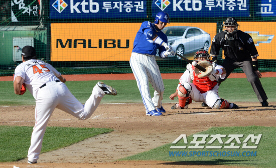'밀어내기 볼넷' 직후 이승엽의 초구 노림수