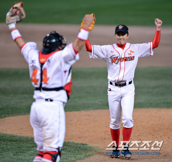 승패의 갈림길에서 극심한 압박감을 이겨내야하는 게 마무리 투수의 숙명. 롯데와의 플레이오프에서도 그랬다. 정우람은 플레이오프 5경기 중 4경기에 등판했다. 그리고 SK가 이긴 3경기에서 모두 세이브를 챙겼고, 더불어 1패를 기록했다. 승리의 순간을 마운드에서 만끽할 수 있는 건 마무리 투수의 특권이다. 정우람은 16일 1차전에서 1이닝을 무안타 무실점으로 막고 2대1, 1점차 승리를 지켰다. 22일 5차전에서도 1이닝을 삼자범퇴시키며 SK의 6년 연속 한국시리즈 진출을 확정했다.
