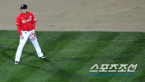 타석에서도 아쉬운 모습 뿐이었다. 3타수 무안타. 7회엔 1사 1,2루 찬스에서 6구 만에 헛스윙 삼진으로 물러났다. 삼성 세번째 투수 안지만에게 3B로 절대 유리한 볼카운트를 점했지만, 소용이 없었다. 카운트를 잡기 위해 들어온 네번째 공은 한복판으로 들어왔으나 그냥 흘려 보냈다. 5구가 문제였다. 몸쪽 높은 직구를 건드려 파울이 됐다. 3B에서 풀카운트까지 몰린 순간. 가만히 뒀으면 볼이었다. 만루 찬스를 발로 걷어찬 셈이었다. 결국 박진만은 6구째 바깥쪽 슬라이더에 체크스윙을 하며 고개를 숙였다.
