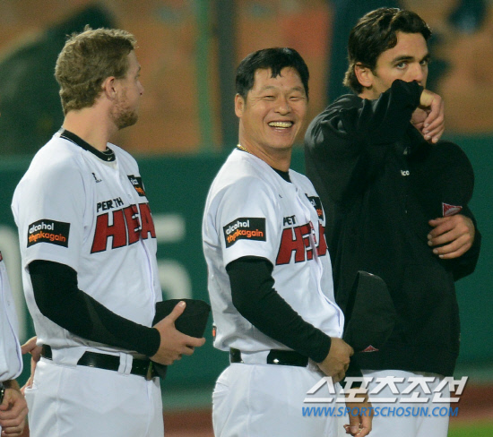 그렇게 그라운드에서 상봉한 두 사람. 구대성은 오랜만에 만난 홍성흔에게 "너도 많이 늙었구나"라며 반가워했다고. 홍성흔은 "이제 내 연차에서는 현역으로 뛰는 선배가 없어 인사할 사람도 없지 않나. 내가 인사를 가니 호주 선수들이 신기하게 쳐다보더라. 어쨋든 외국팀에서, 현역으로 뛰는 선배의 모습을 보니 기분이 좋았다"며 밝게 웃었다.