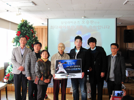 오승환은 지난 시즌 한국프로야구 개인통산 최다세이브의 주인공이 되면서 그 후 세이브 1개를 추가할 때마다 지역 사회복지 단체에 스마트TV 1대씩을 기증하기로 했다. 해당 시점부터 22세이브를 추가했고 22대의 TV 가운데 16대를 시즌 중에 전달했으며, 이번 행사에서 나머지 TV 6대가 주인을 찾아갔다.
