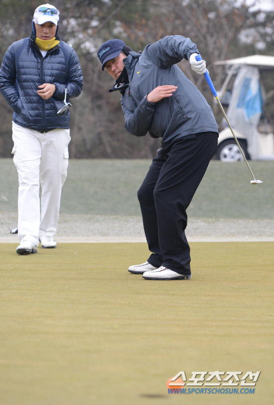 제31회 야구인골프대회가 3일 경기도 이천 휘닉스스프링스CC에서 열렸다. 대회에 참가한 삼성 라이온즈 진갑용과 이승엽이 퍼팅을 하고 있다. 이천=정재근 기자 cjg@sportschosun.com/2012.12.03/