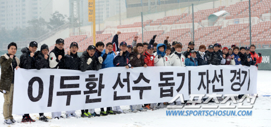 하늘이 무심했다. 투병 중인 동료를 돕기 위해 만사 제쳐두고 21일 목동구장에 모인 프로야구 선수들은 하염없이 하늘만 바라봤다. 하늘은 이들의 마음을 아는지 모르는지 계속해서 눈을 뿌렸다. 하지만 병마와 싸우고 있는 이두환의 마음은 따뜻해졌을 것이다. 흰 눈 위에 모여진 동료들의 따뜻한 마음이 분명히 전달됐을 것이기 때문이다.