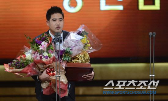 | 삼성 장원삼은 내년 4억원의 연봉을 받는다. 올해보다 77.8%가 인상된 금액이다. 골든글러브 시상식에서 소감을 말하고 있는 장원삼. 전준엽 기자 noodle@sportschosun.com |