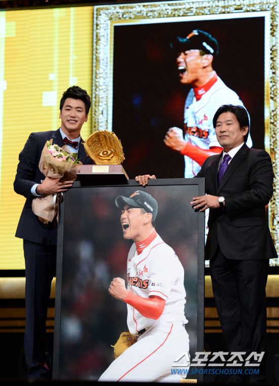 2012 팔도프로야구 골든글러브 시상식이 11일 서울 삼성동 코엑스에서 열렸다. 골든포토를 수상한 SK 김광현이 취재진을 위해 포즈를 취하고 있다. 조병관기자 rainmaker@sportschosun.com