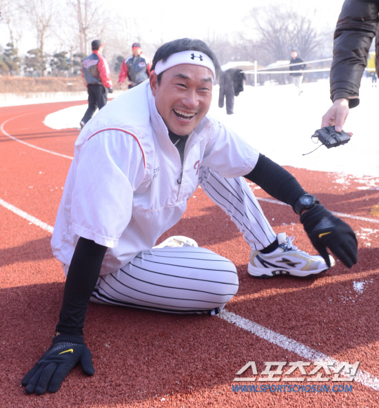 프로야구 LG트윈스 선수들이 7일 오전 시무식과 력테스트로 2013년 일정을 시작했다. 봉중근이 4000M 달리기 테스트를 마치고 가뿐 숨을 몰아쉬고 있다. 잠실=최문영 기자 deer@sportschosun.com