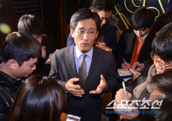 제10구단 창단을 위해 경쟁을 벌이고 있는 KT와 부영그룹이 10일 오후 삼성동 그랜드 인터콘티넨탈 호텔에서 평가위원들을 대상으로 프리젠테이션을 가졌다. 양측의 프리젠테이션이 모두 끝난뒤 KBO 양해영 사무총장이 간단한 브리핑을 하고 있다. 삼성동=최문영 기자 deer@sportschosun.com /2013.01.10/