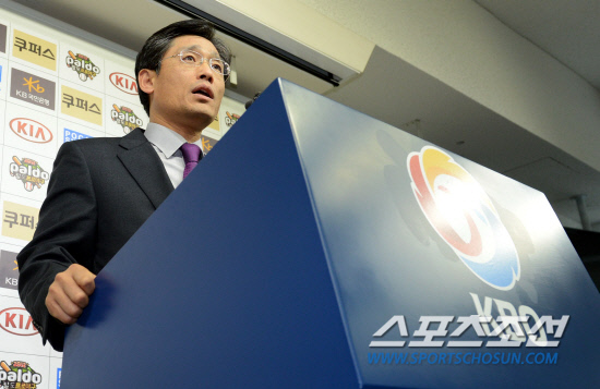 프로야구 제10구단 창단 구단을 사실상 결정할 이사회가 11일 서울 도곡동 야구회관에서 열렸다. 양해영 사무총장이 이사회 결과를 발표하고 있다. 창단 유치 신청을 한 KT와 수원, 부영과 전북이 지난 10일 평가위원들을 상대로 프레젠테이션을 가졌고 평가위원회의 결과가 오늘 열린 이사회에 전달됐다. 이사회에서 10구단으로 연고지는 수원시, 운영기업은 KT가 최적이라는 판단을 내리고 최종 결정은 조만간 있을 총회에서 상정하기로 결정했다. 허상욱 기자 wook@sportschosun.com