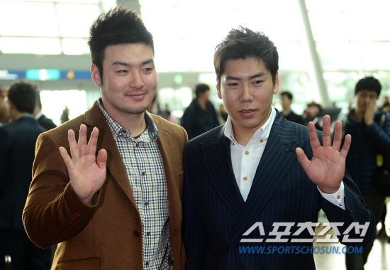 넥센 히어로즈 선수단이 20일 인천공항을 통해 출국 했다. 넥센은 미국 애리조나에 전지훈련 캠프를 차린다. 출국을 준비하며 포즈를 취하고 있는 박병호(왼쪽)와 강정호. 인천=송정헌 기자 songs@sportschosun.com/2013.1.20